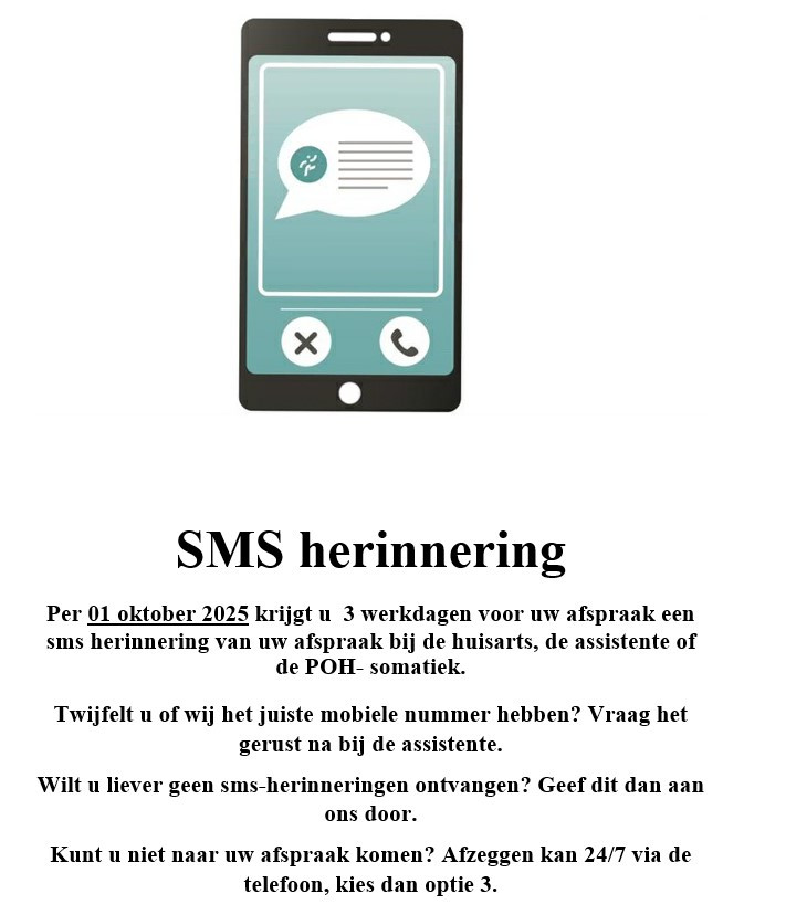 Bij dringende vragen buiten kantooruren die niet kunnen wachten tot het eerstvolgende reguliere spreekuur van uw huisarts, belt u de huisartsenpost: 079 - 343 16 00